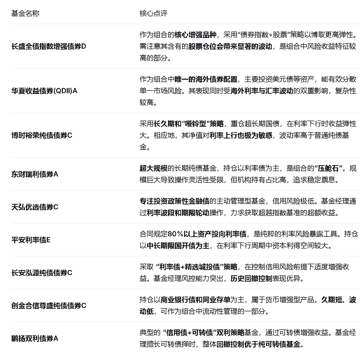 接下来,咱们再以$十拳剑超稳星$这个固收加策略为例,看看都有哪些类型的债券基金。