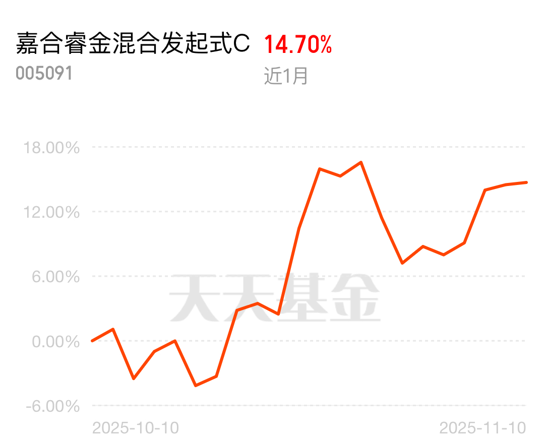 科技板块近期热度持续走高,CPO和存储芯片的景气度不断提升,成为资金追捧的对象。嘉合睿金混合C精准切入这两大热门赛道,近1个月上涨14.70%,业绩亮眼,想参与的别错过。