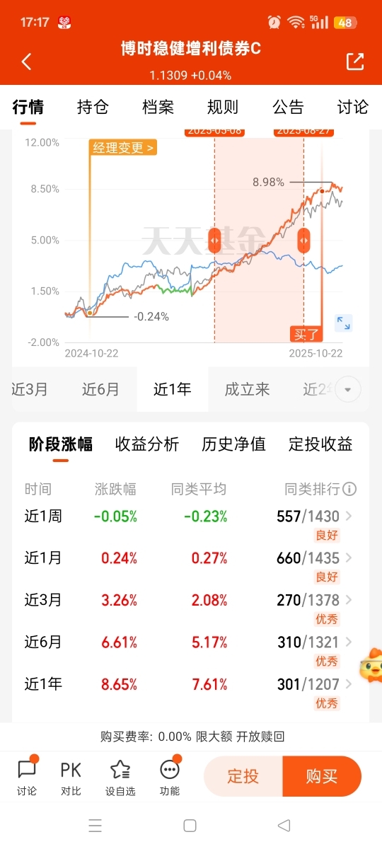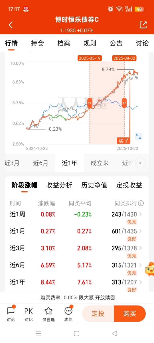 连涨两天收蛋30多。最近有色金属板块有点动静,$博时恒乐债券C$ 持仓里有紫金矿业,感觉又能蹭一波热点