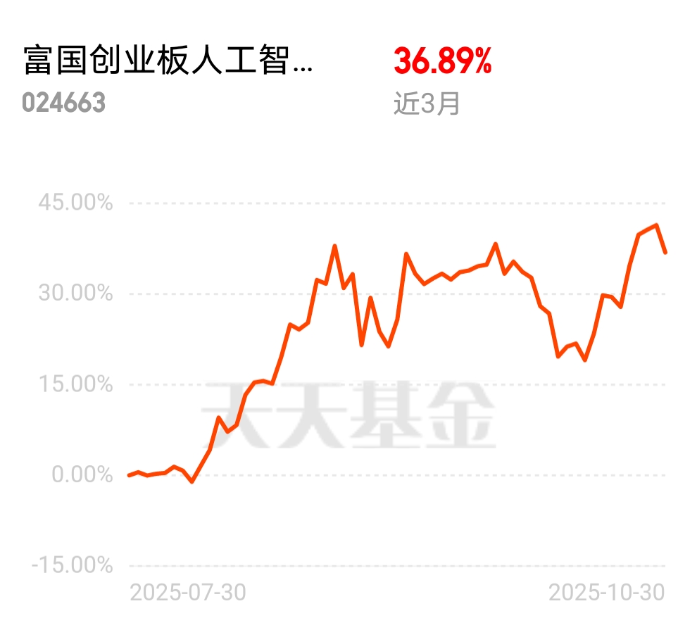 我持仓的易方达沪深300ETF联接C偏大盘稳当,但想多点成长性就配了富国创业板人工智能ETF联接C近6个月涨了43%,跑赢大多数同类;这季度成分公司真金白银赚的钱还猛增68%!现在估值比过去五年22%的时间都便宜,拿点仓位试水挺安心。