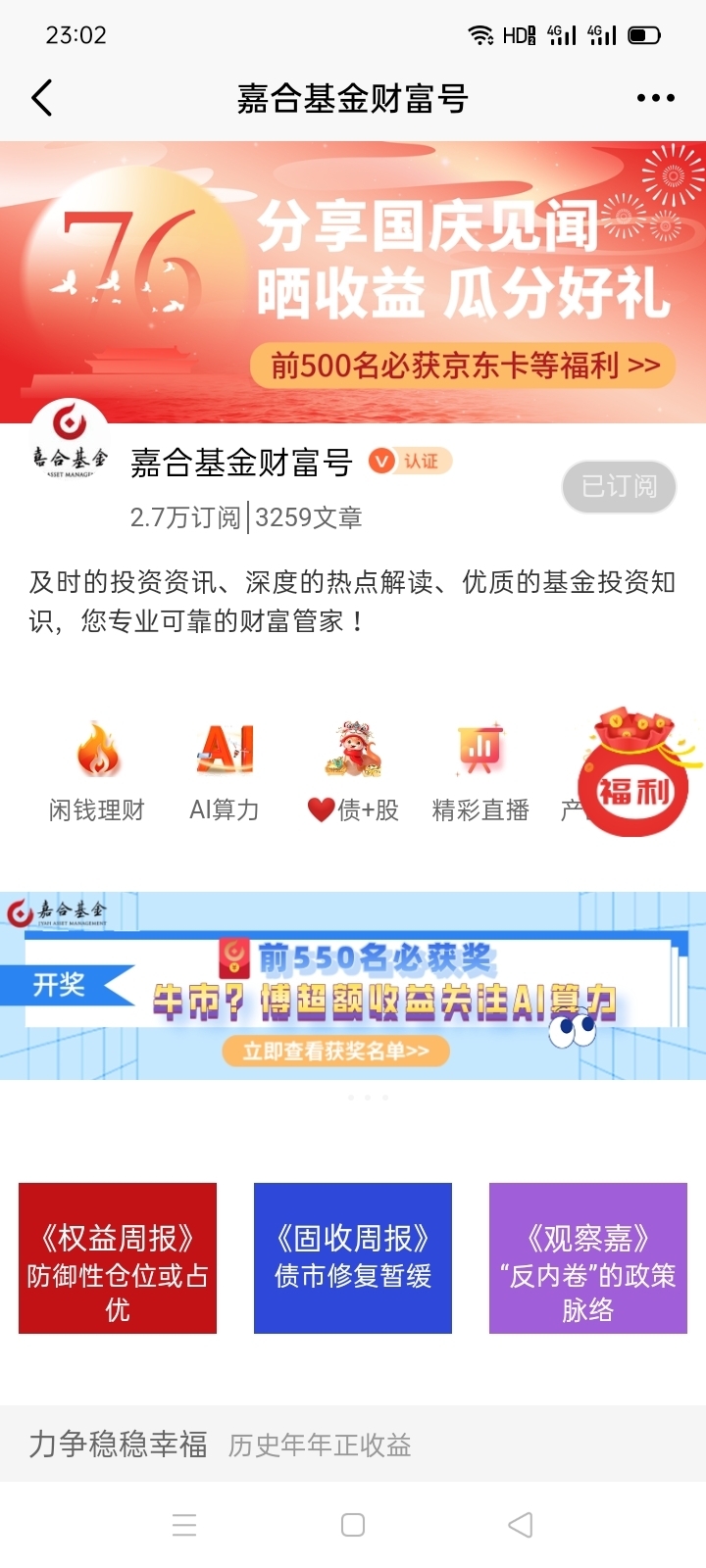 国庆假期的商超景象,让我们看到了消费的活力和科技的魅力。未来科技依然是推动社会发展和经济增长的主流力量,机器人科技作为其中的重要组成部分,值得我们重点关注和投资。通过“债基加科技”的投资规划,可以在稳健与进取之间找到平衡,实现资产的长期稳健增长。让我们携手科技,迎接更加美好的未来。@嘉合基金