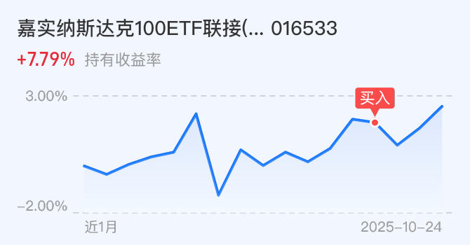 纳斯达克:隔夜美股三大指数集体高开高走,纳斯达克+1.86%,涨幅居前并再创新高,大型科技股普涨,高通涨超11%,创2024年7月以来新高,纳指不是在创新高,就是在创新高的路上,简直太强了,纳指是长牛指数,中长期投资价值非常大,可以分批买入或者定投跟紧。近期很多加纳指100指数又开始限额了,$嘉实纳斯达克100ETF发起联接(QDII)C人民币(OTCFUND|016533)$当前日限5000,额度还比较宽松,操作空间也比较大,且买且珍惜。