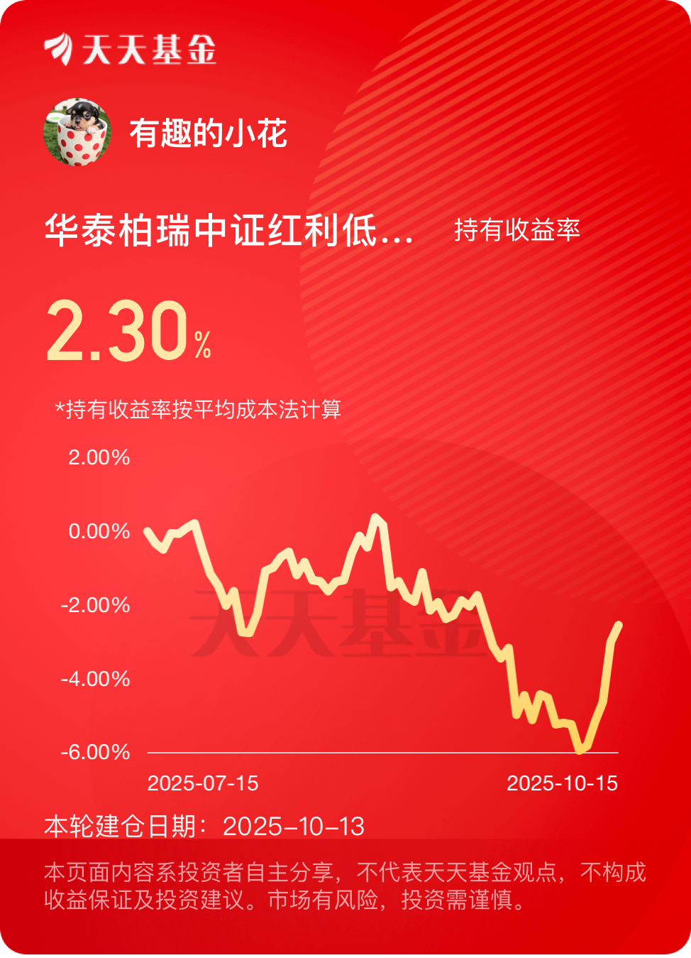 在利率下行与波动加大背景下,$华泰柏瑞中证红利低波ETF联接C$ 连续6日上涨,其稳定分红与低波特性成为资金天然避风港。 #晒收益#