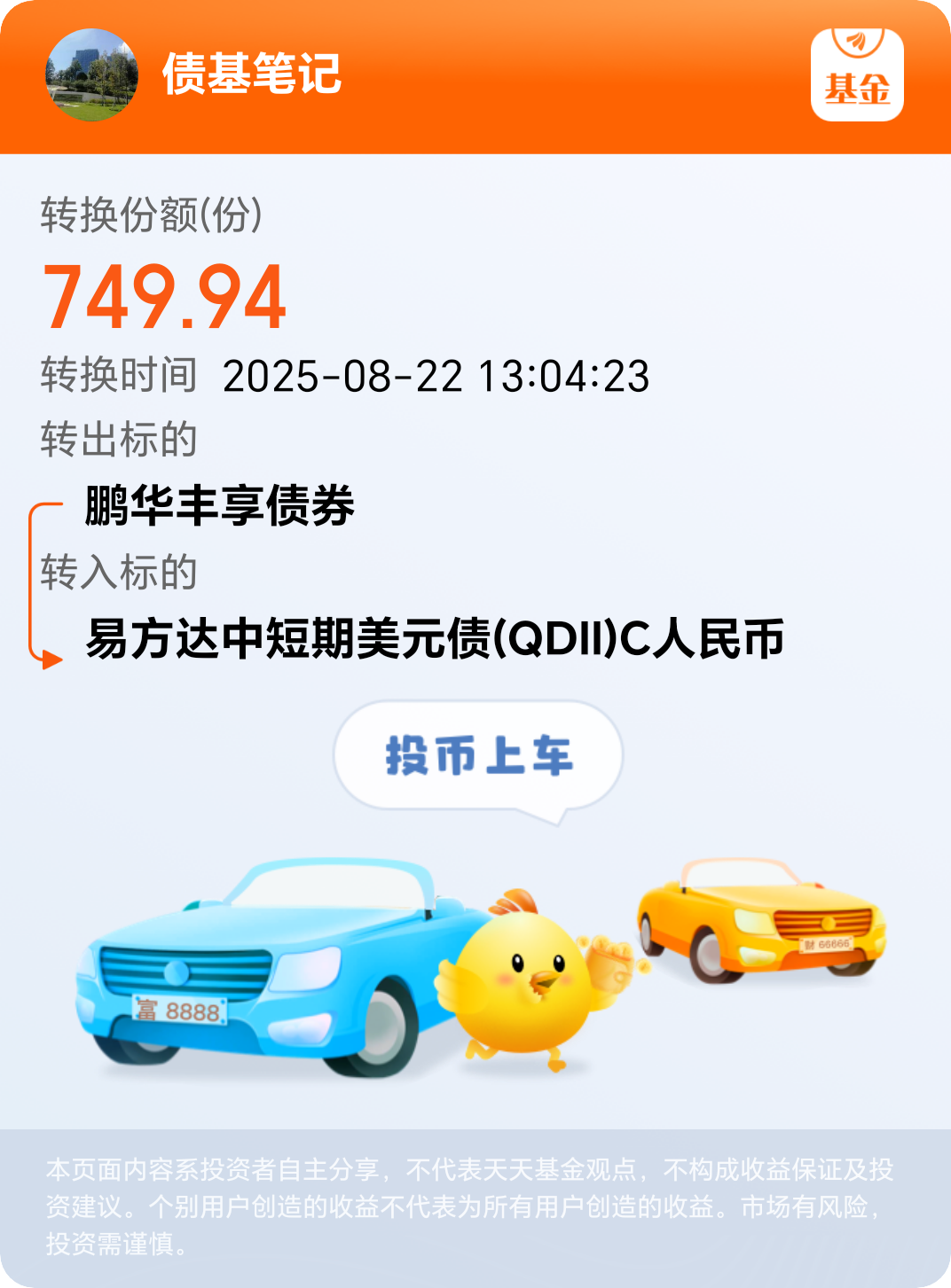 今天把鹏华丰享又转出了一部分,买入易方达中短美元债。美债降息的可能性非常大,虽然美联储官员的发言左右摇摆,但这是经济形势做决定,不以个人意志为转移。