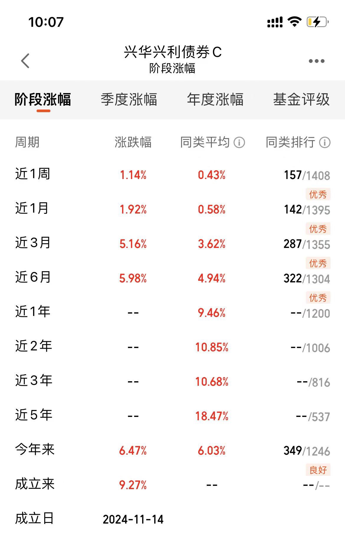 我之前买理财总在 “稳” 和 “赚” 之间纠结,兴利二级债基解决了这个问题。固收打底保证稳健,权益增强带来收益弹性,股债双轮驱动,近一个月在同类中排名靠前,让我不用再做两难选择。$兴华兴利债券C$