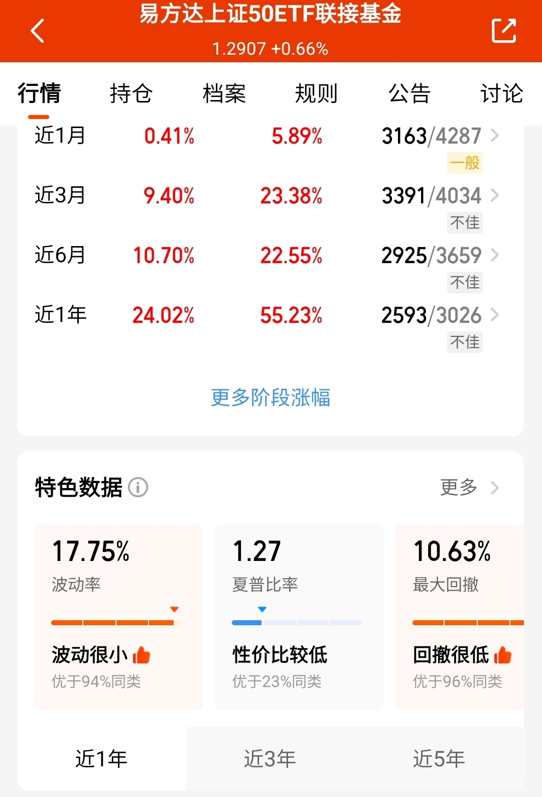 近期股市行情还是有些偏震荡呢,成长风格虽表现抢眼,但是呢也需警惕高估值风险,$易方达上证50ETF联接基金C(OTCFUND|007380)$具有大盘成长风格,适当的配置可以能有效平衡风险。大家也关注一下吧。