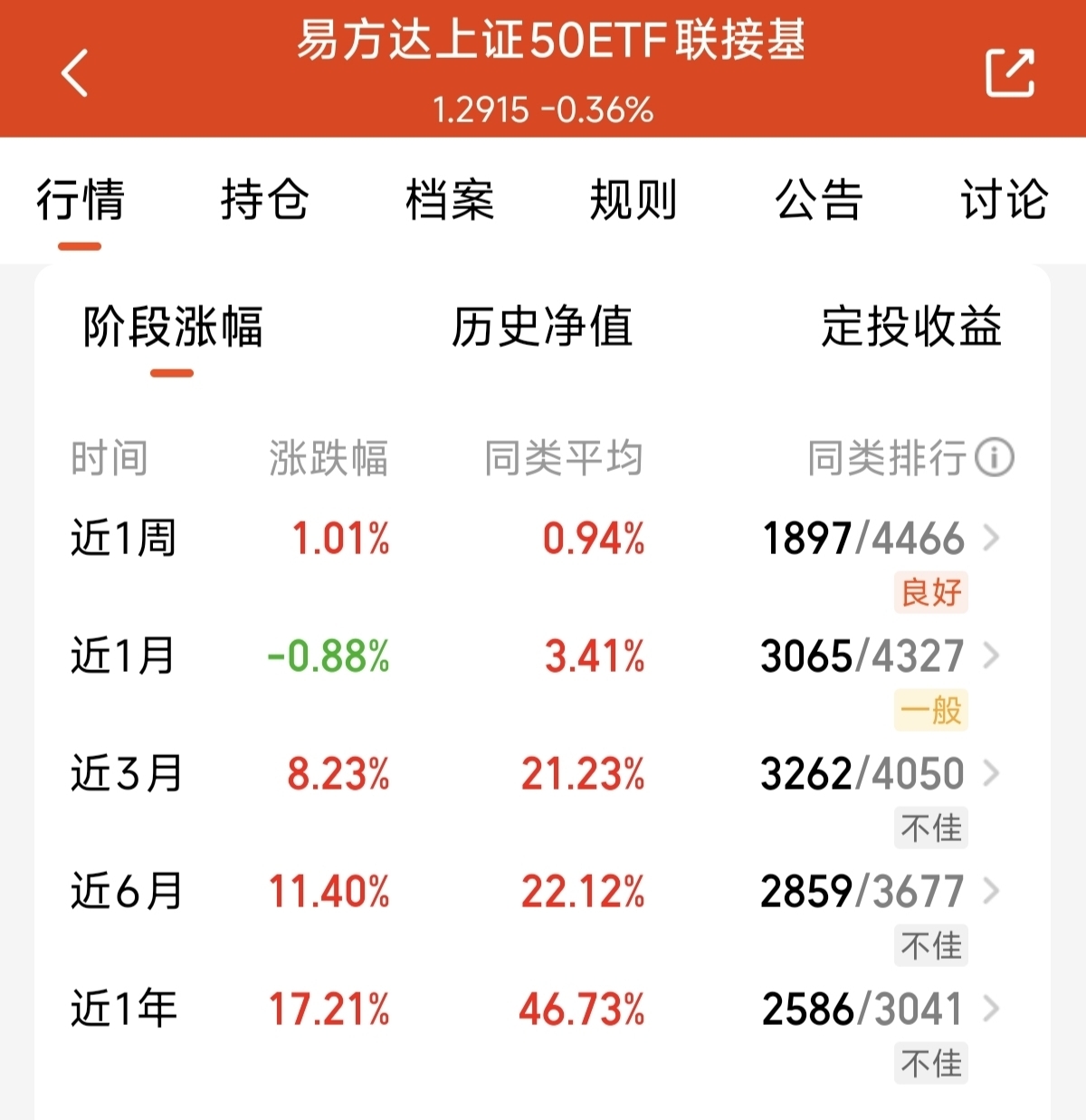 三大指数今天开始反弹。大科技表现的依然不错。不错成长风格虽表现抢眼,但也需警惕高估值风险,当前我还是布局一些$易方达上证50ETF联接基金C$这类大盘价值风格稳定宽基,均衡持仓,可以有效平衡风险,长期抗波动的能力强,近一年也上涨了17.21%。整体表现也是非常安心。期待继续创新高!