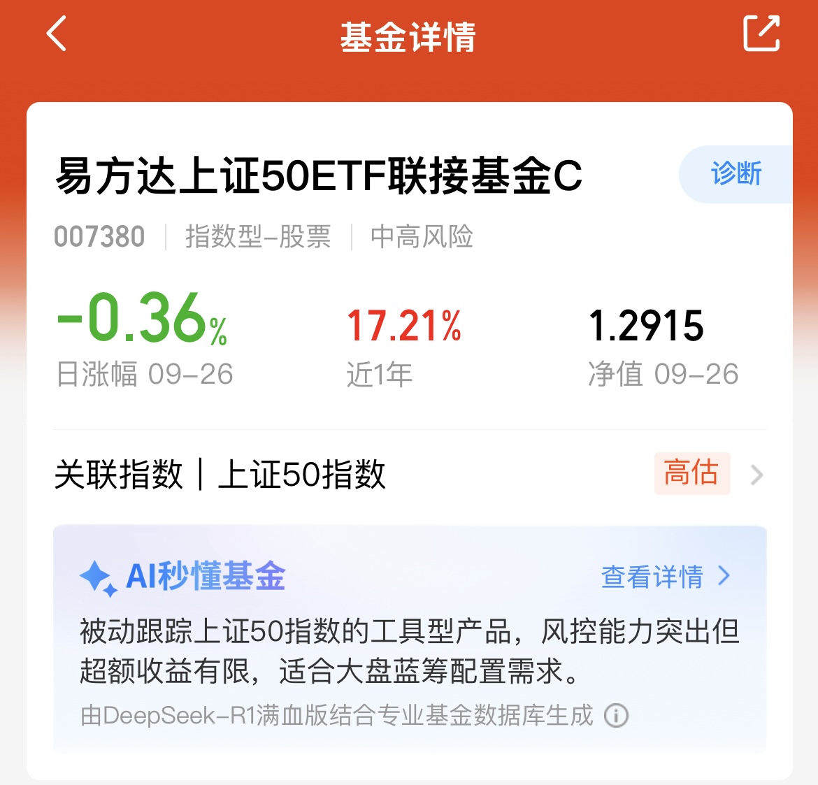 今天A股震荡拉升,三大指数均翻红了,近期行情波动还是蛮大的,轮动也快,科技和医药都相继调整,比较难抓热点,风险是比较高的,所以我还是均衡持仓仓,$易方达上证50ETF联接基金C(OTCFUND|007380)$我觉得挺不错的,波动相对小,近一年涨幅17.21%,持仓有消费、金融、科技等等赛道,我今天也慢慢定投起来!