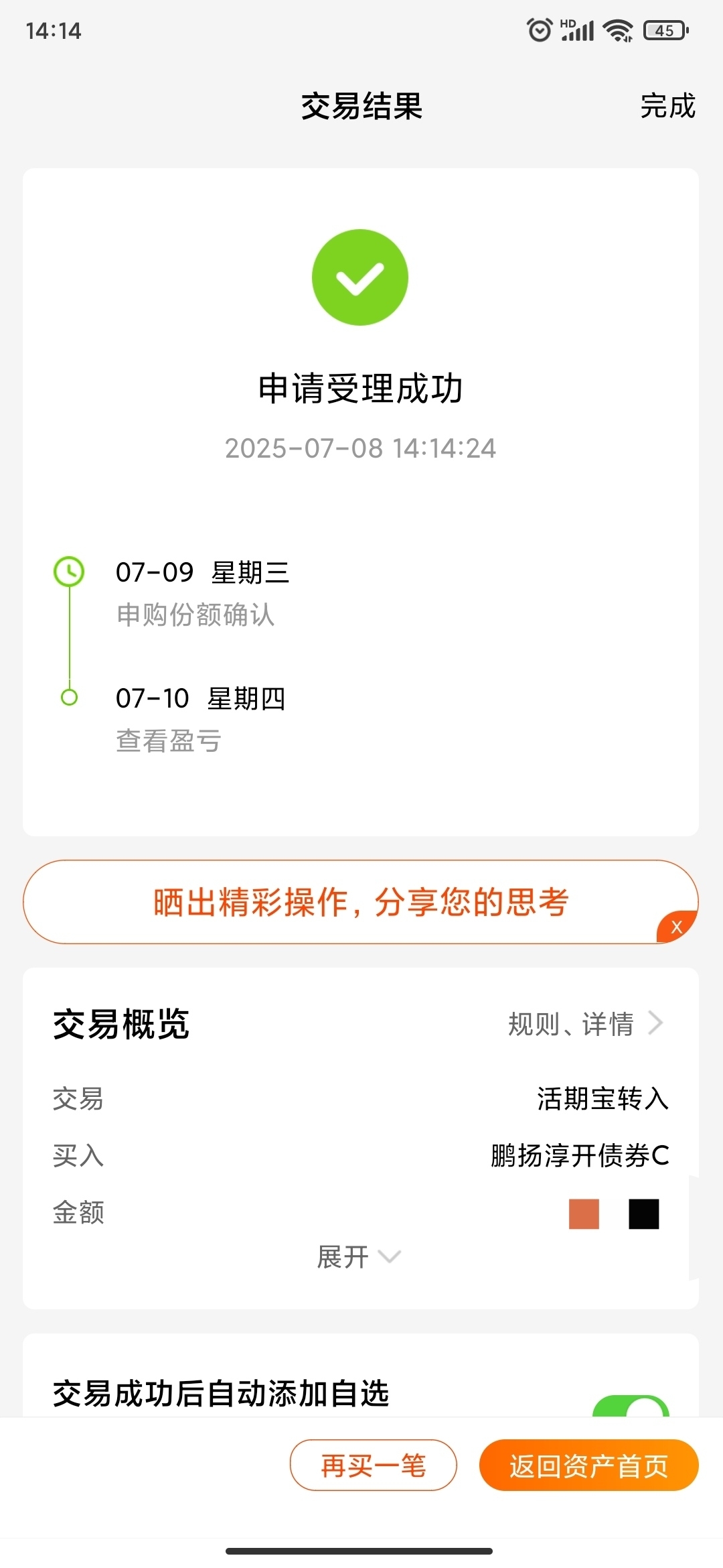 一个月收72个蛋,真给力,现在市场波动大,长期稳健增长才是王道$鹏扬淳开债券C$