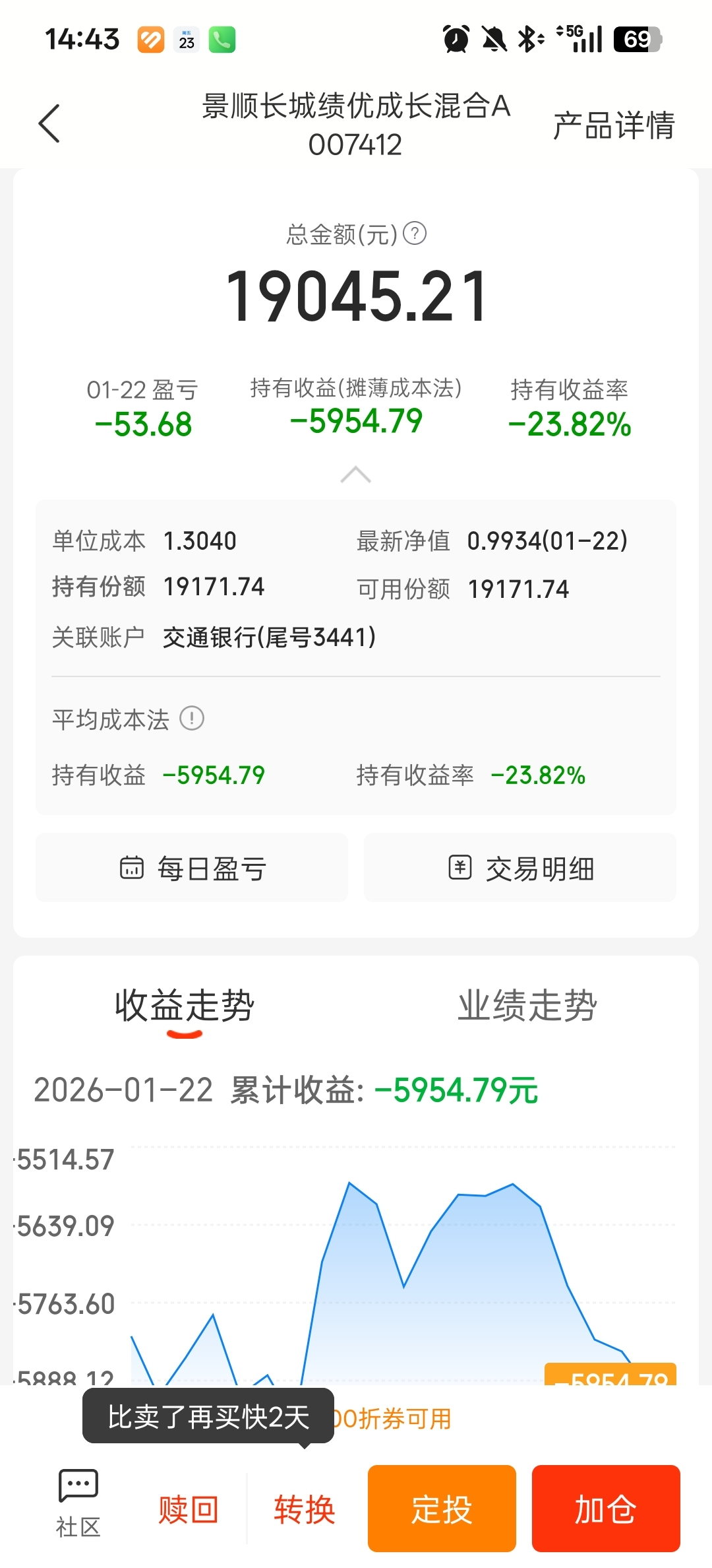 $景顺长城绩优成长混合A(OTCFUND|007412)$ 买了好几年了,还亏成马了