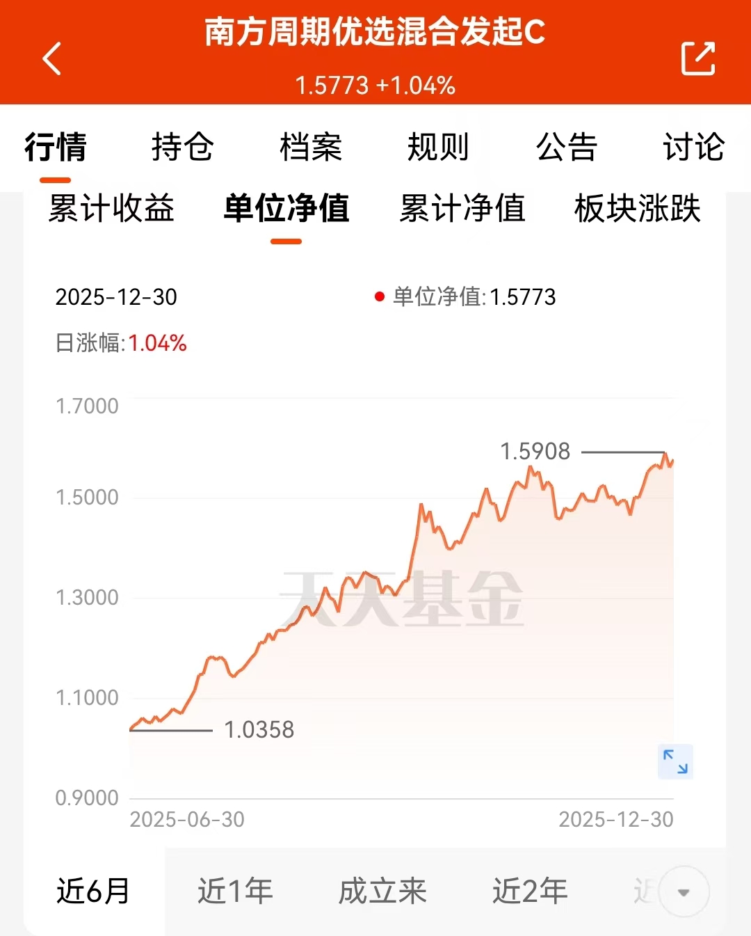 看来看去,还是$南方周期优选混合发起A$(021711)这个基金顺眼,今天估计又能往上走一走,我买了点。它近半年涨了52%,这数字看着就舒服。背后的道理其实不复杂,就是它投的有色和化工这两个东西,现在环境对它们有利。有色金属那边,很多新产业都要用,但开矿建厂没那么快,东西就那么多。化工这边,行业内部调整,乱七八糟的产能少了,剩下的公司日子就好过点。这个基金就卡在这个位置上,我觉得还行。#【跨年坦白局】提问金梓才、陈果#