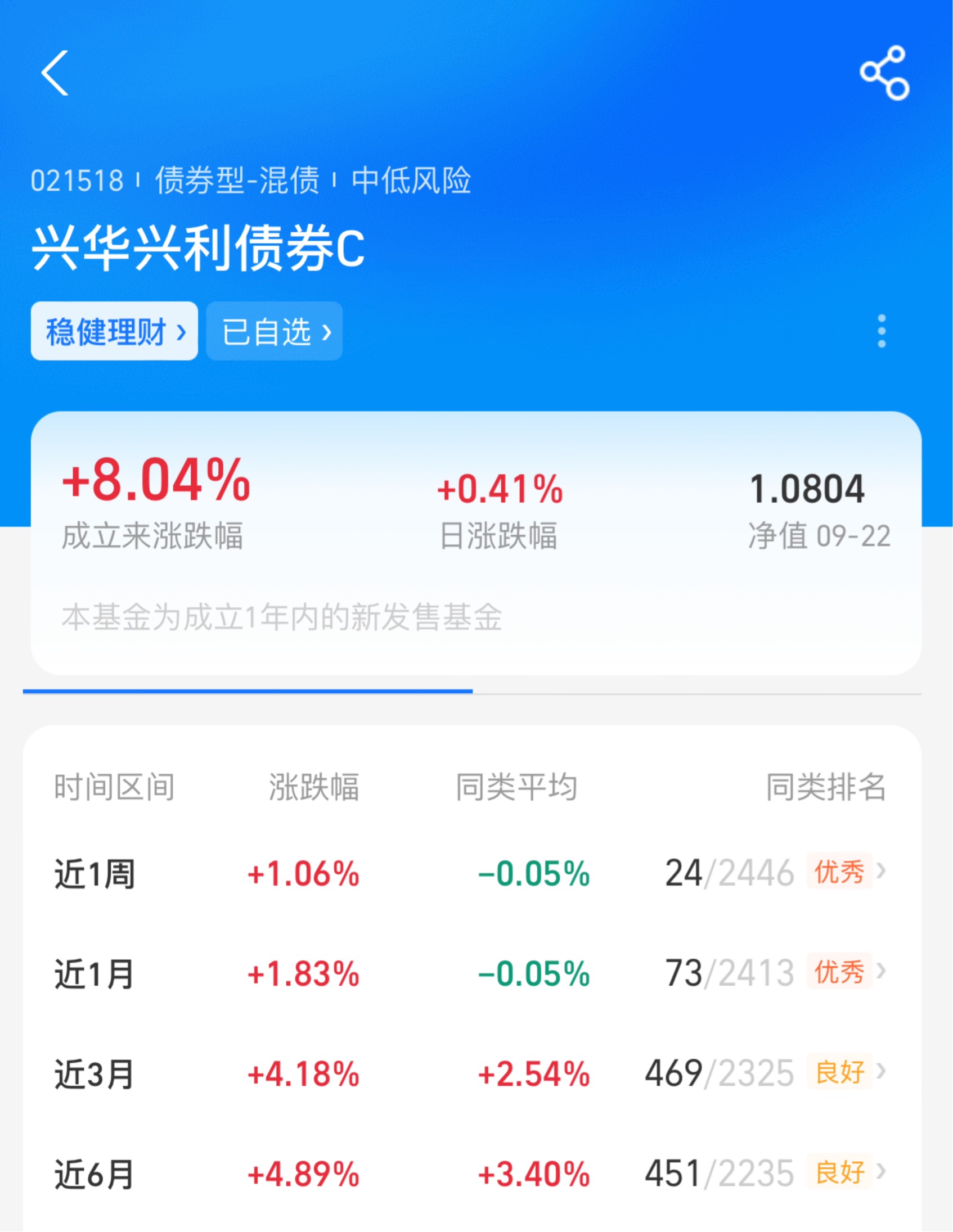 我风险承受能力一般,买理财就图个踏实,兴华兴利债券真的太对我路子了,讨论区 6 楼还有上车菜。今天打开收益一看,昨天居然收了 41 个蛋,太惊喜了。它先用固收资产扛住波动,再拿点权益资产抓点市场机会,不用我一边想多赚点一边又怕亏哭,作为家里的理财配置挺合适的。