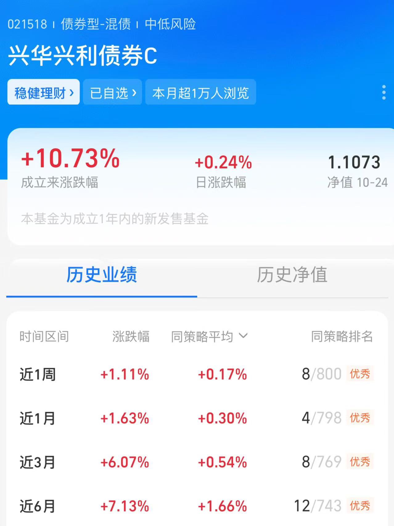 兴华兴利很懂怎么在控制风险的同时多赚点,昨天又涨了 0.26%。它的 “固收 +” 策略会提前规划好风险,权益仓位也会灵活调整,不管市场怎么变,都能适应得很好。$兴华兴利债券C$