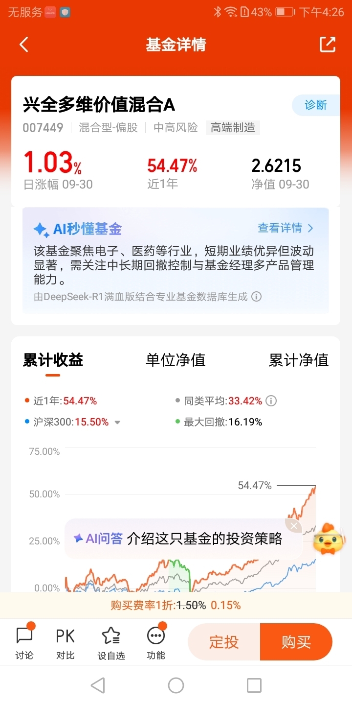 今年以来,以科技为主的成长股表现不错,都有一定的涨幅,$兴全多维价值混合A$ 是一支投资高端制造为主题的基金,也属于科技范畴内的。该基金可以投资A股和港股两个市场,基金经理杨世进,该基金今年以来已上涨51.62%,近5年已上涨86.19%.2019年成立以来已上涨162.15%。对于该基金我认为采取手动定投的方式较为稳妥,小跌小补,大跌大补是一个不错的加仓方式,必须投资是需要看长期的。@兴证全球基金