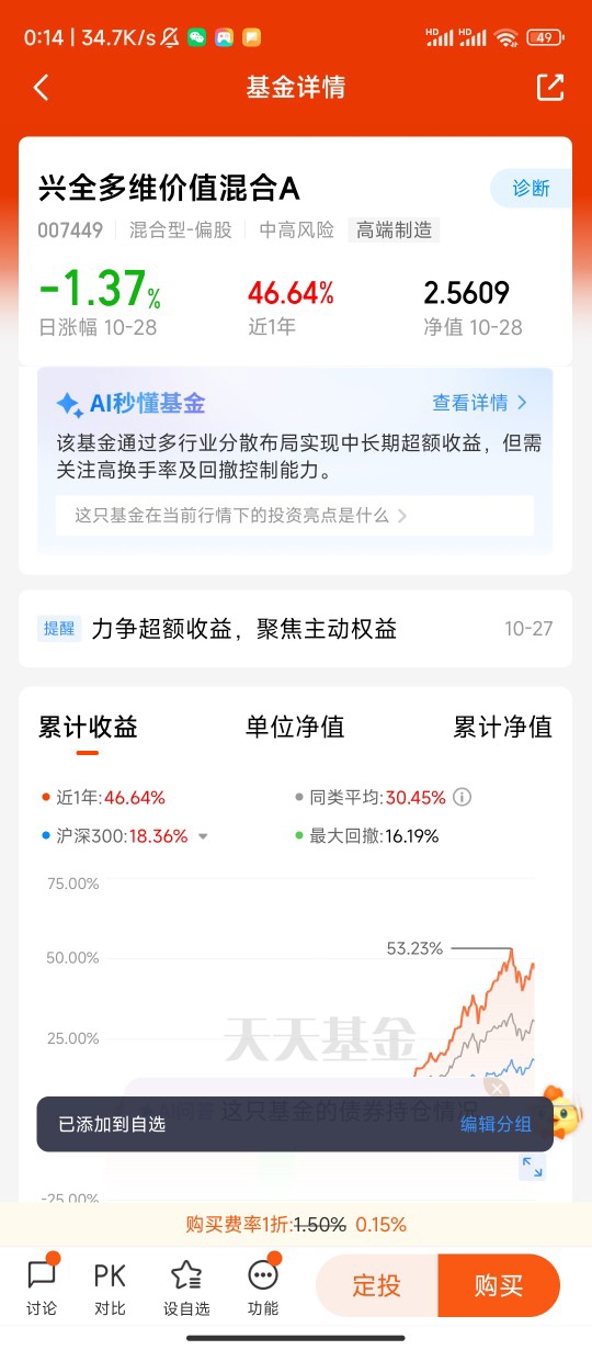 总的来说,股市火热的时候,越要选得稳。兴全多维价值混合A既有杨世进这样经过市场检验的基金经理掌舵,又有“医药打底+多行业轮动”的均衡策略护航,既能抓住上涨的机会,又能在波动时抗住风险。对于想加仓又怕踩坑的普通人来说,这样的基金确实是当下的优选,长期拿着大概率能有不错的回报。@兴证全球基金 @股友83i828051v @辣妈养鸡
