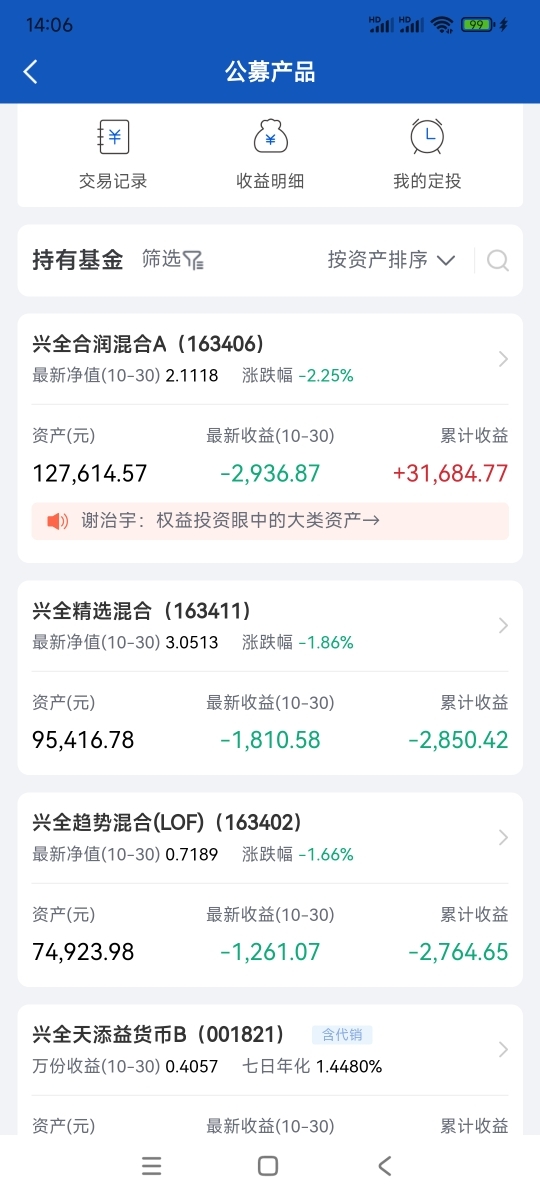 而他自己做投资,就认准“风险和收益率平衡”这一件事,从不搞花里胡哨的操作,管理$兴全多维价值混合A$ 的这几年,最得意的不是抓了多少牛股,而是一句话:没在大方向上踩过坑,尤其是从不在行情最疯的时候,一股脑把钱砸进某个行业。