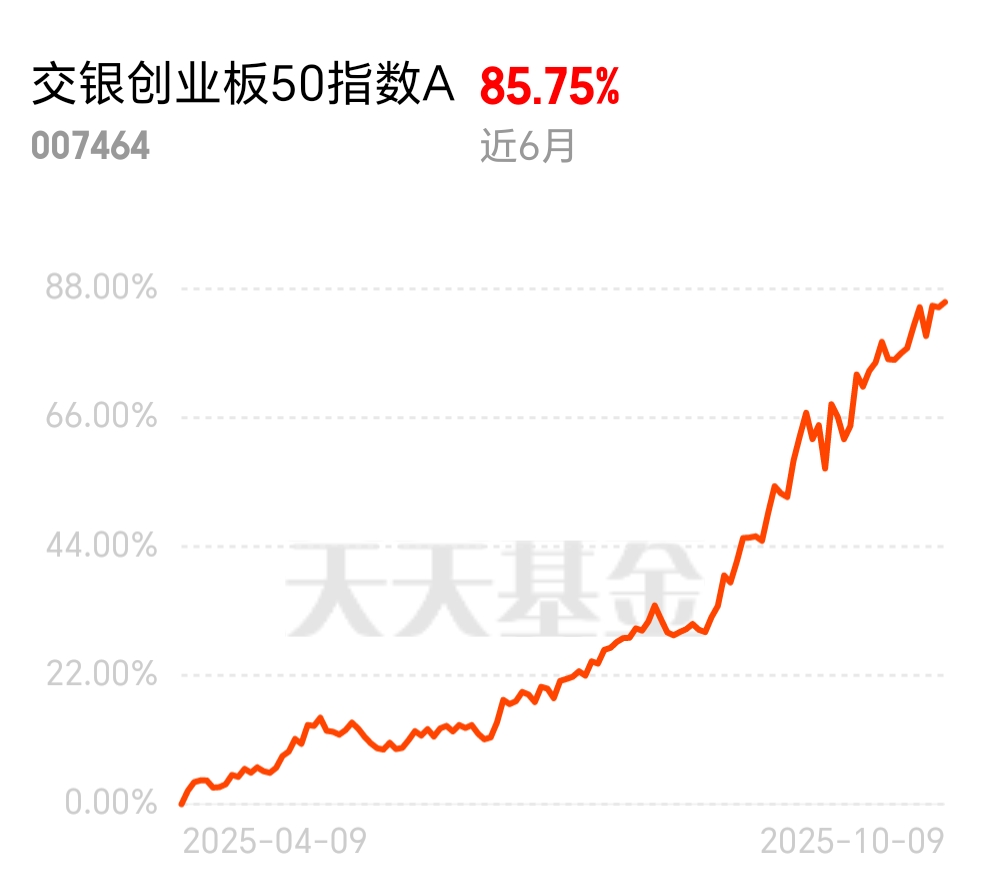 $交银创业板50指数A$近半年的收益超过了80%啦