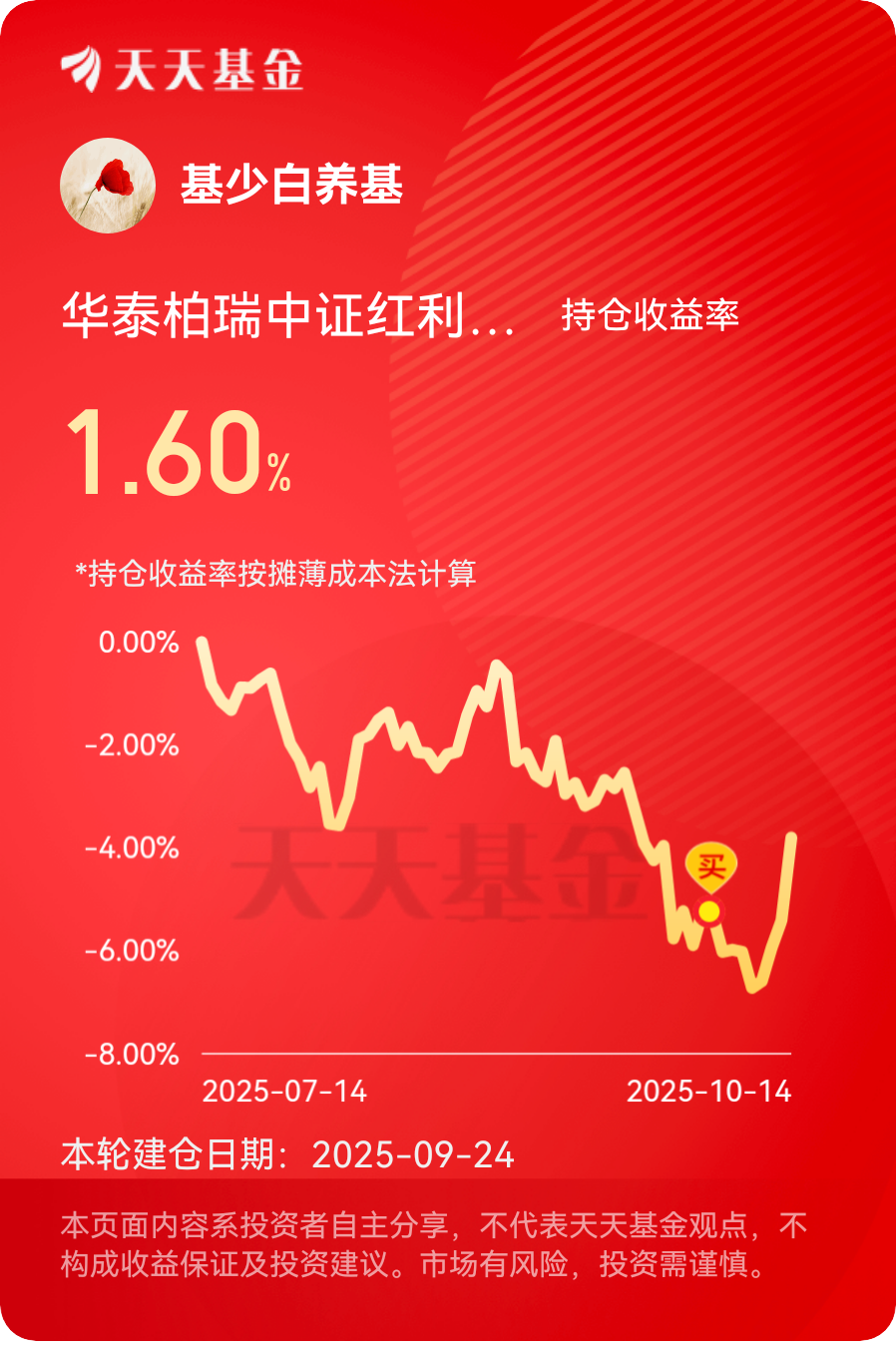今天$华泰柏瑞中证红利低波ETF联接C$ 又带来惊喜,涨了1.70%,已经连涨四天。看来四季度的季节效应确实明显,红利板块值得期待。#3900点得而复失!A股风格要改了?# #稀土价格暴涨37%!稀土板块狂飙# #全球市场深夜暴跌!纳指重挫超3%#