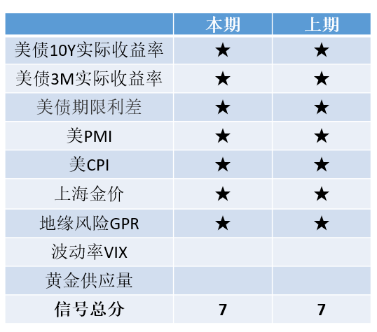 信号说明:交银黄金信号系定量化模型,其分值由9指标综合计算得出,信号分值越高越看好。如果分数<1/3,则看空黄金;如果分数>=2/3,则看多黄金;其余则对黄金观点中性。交银黄金加基金投顾策略根据黄金模型月末信号,定期调仓黄金类资产持仓比例,力争提升黄金投资性价比。
