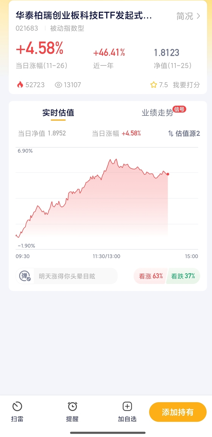 没想到今天创业板指这么猛,低开高走直接涨超3%,午盘2.76%的涨幅就已经其他指数了。盘面上全是科技股的天下,AI应用商业化落地加速,CPO概念持续走强,还有半导体、新能源这些高成长板块都在涨,政策和资金都对着科技赛道发力。咱们普通人想参与又没精力研究个股,华泰柏瑞的相关产品就很对症,它跟踪创业板科技相关指数,把赛道里的龙头都打包进去了,能轻松跟上行情,不用自己选股,小仓位慢慢布局,既不用错过机会,也能控制风险,挺适合咱们日常理财的。$华泰柏瑞创业板科技ETF发起式联接C$