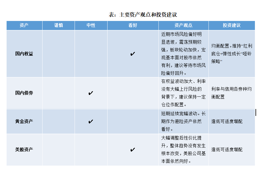 综合当前的市场状态,建议您根据自身的持仓情况、资金属性、风险承受能力,做好资产配置。