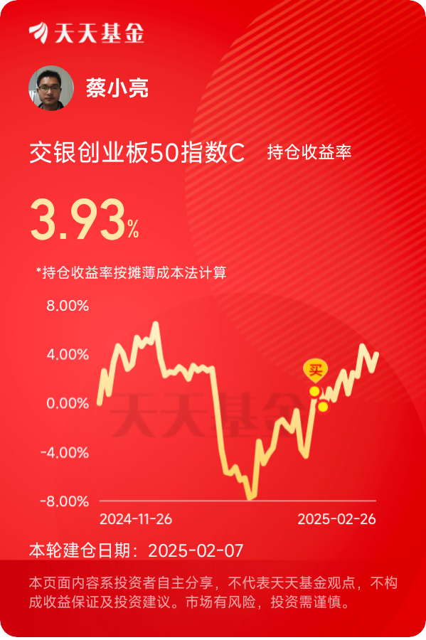 今天小幅回调,洗洗更健康嘛,我还是坚定看好创50指数基金,继续持仓就行!