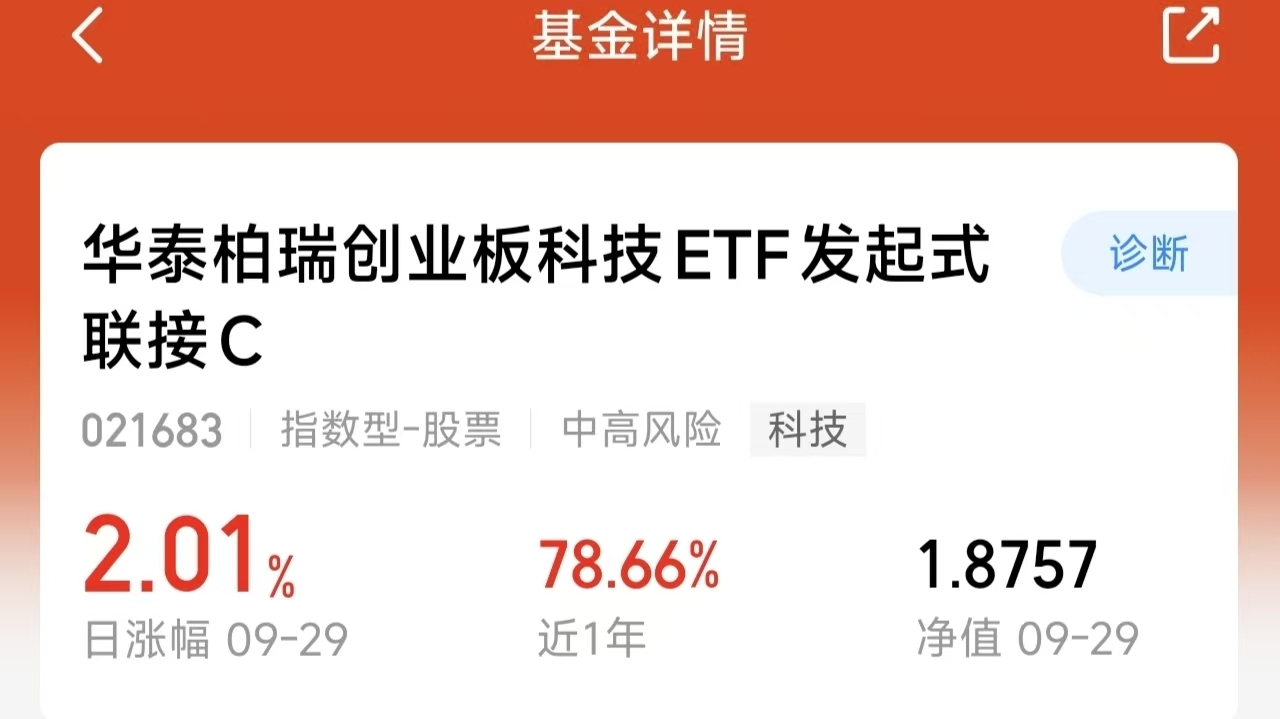 $华泰柏瑞创业板科技ETF发起式联接C$今天又涨2.01%!一个月12.56%,