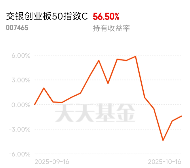 $交银创业板50指数C$昨天还涨了0.6%,虽然今天回调了,先拿着吧