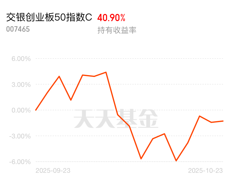 创业板指数基金最近表现不错的,可以继续投资了$交银创业板50指数C$