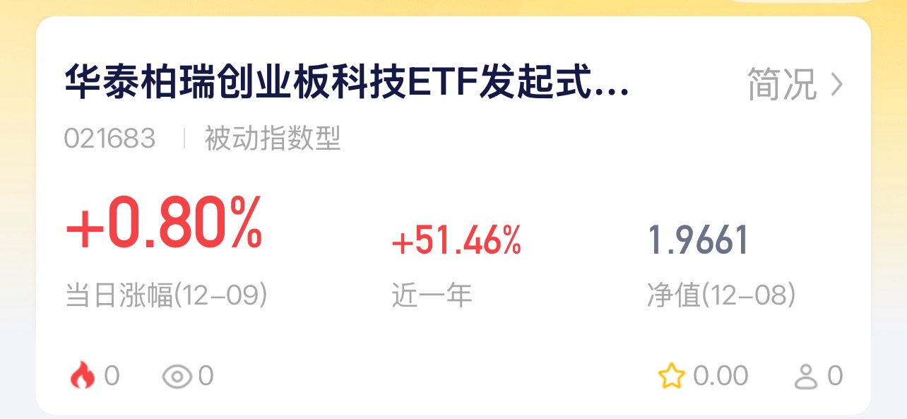 虽然今天创业板指没怎么涨,但科技板块历来是“反弹急先锋”。如果你也相信科技创新的未来,但又怕选不对个股,可以考虑像华泰柏瑞创业板科技联接C这样的工具。它主要投资创业板科技ETF,帮你一篮子买入创业板里优质的科技公司。这类产品适合长期看好科技成长、又想规避单个股票雷区的投资者。趁着市场整理,慢慢积累份额,也许是不错的选择。