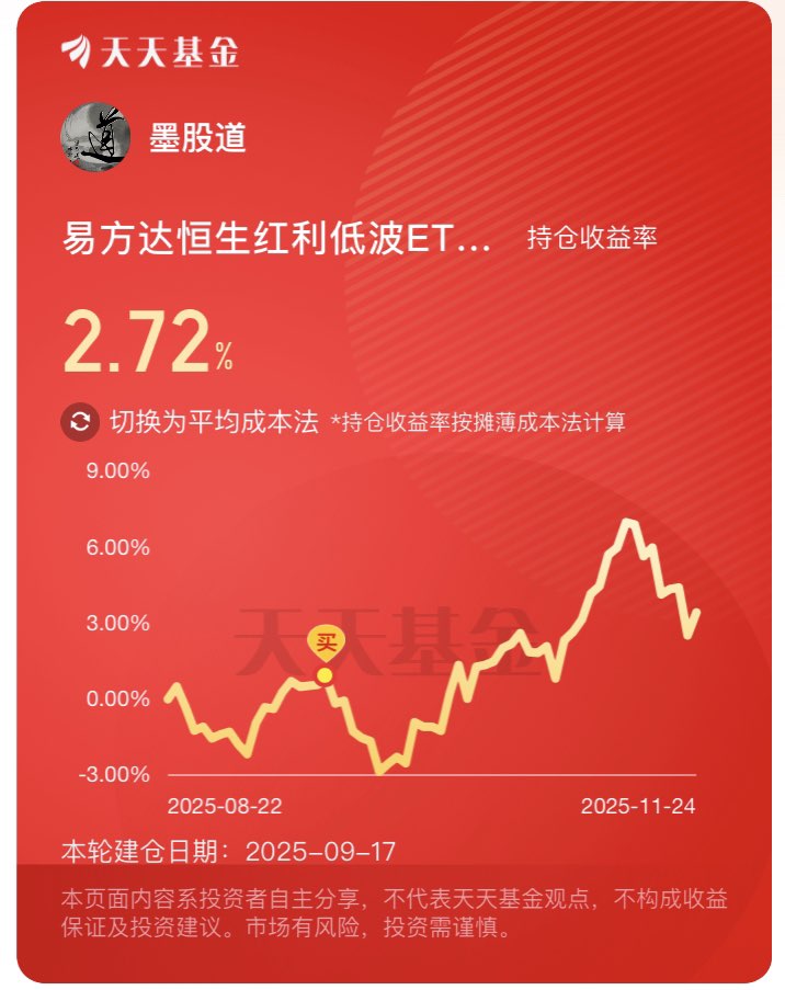 今天 A 股上涨主力是科技相关板块,通信、元件、半导体这些题材涨得很突出。中际旭创、新易盛等大市值行业龙头,涨幅普遍超五个点。我打算偏防守些,继续加仓易方达恒生红利低波 C,同时止盈一部分资金转到红利板块,这样能稳住已有的收益,在行情里更稳妥。