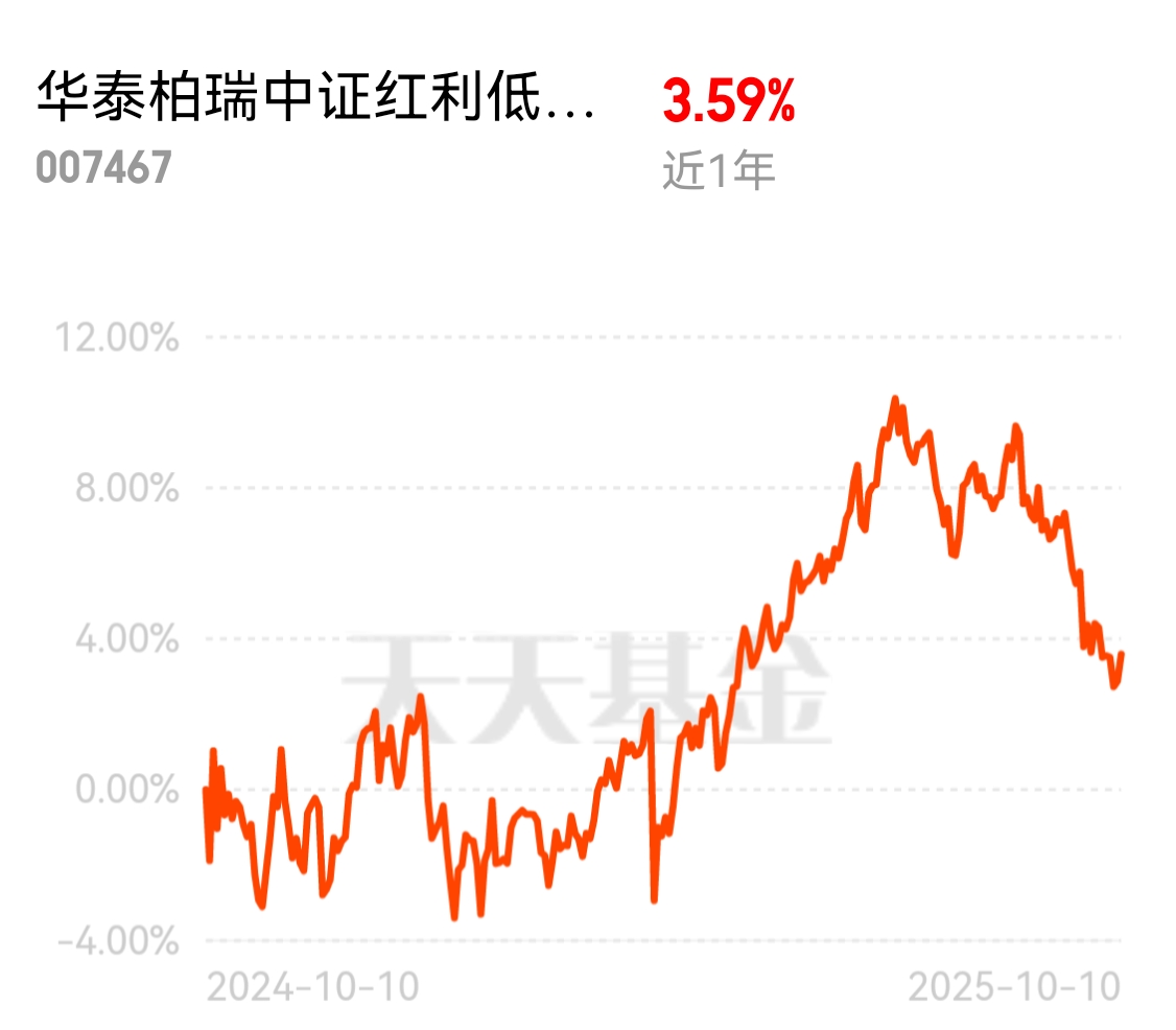 市场风险偏好下降,资金自然流向稳健品种。看华泰中证红利今天能逆势上涨,就明白了这个道理。 $华泰柏瑞中证红利低波ETF联接C$