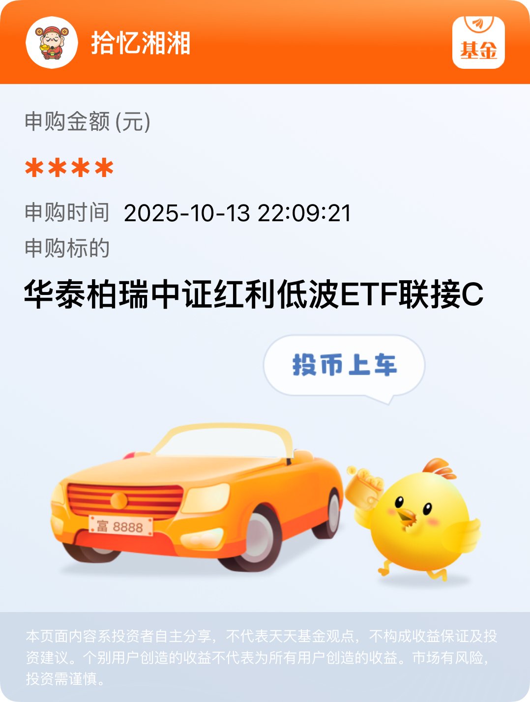 看到$华泰柏瑞中证红利低波ETF联接C$ 今天涨了0.56%,在震荡市中显韧性。季节效应显示四季度是布局红利的好时机,准备跟进。#10月你看好哪些投资赛道?# #稀土价格暴涨37%!稀土板块狂飙# #全球市场深夜暴跌!纳指重挫超3%#