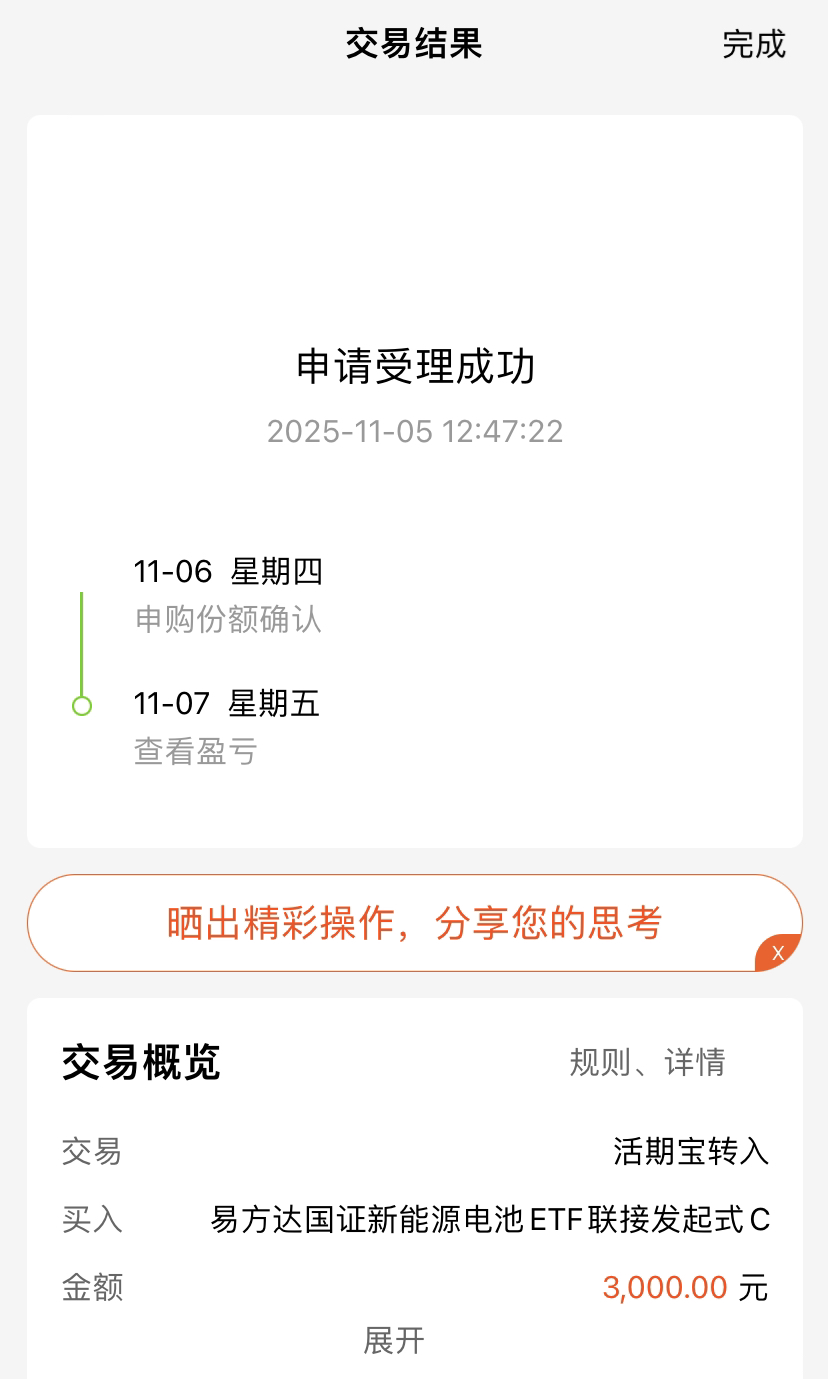 早盘低开高走补了 3926 点缺口,技术派的 担忧暂时没了,但反弹缩量是大问题,主力还在大幅净流出,上涨家数也在减少,短线跌得差不多了。今天储能电池很亮眼,新能源电池指数涨幅远超其他电池指数。政策推储能规模化,需求也爆发,龙头订单排到明年,易方达国证新能源电池 ETF 联接 C 投 65% 储能电池,我先关注上车。
