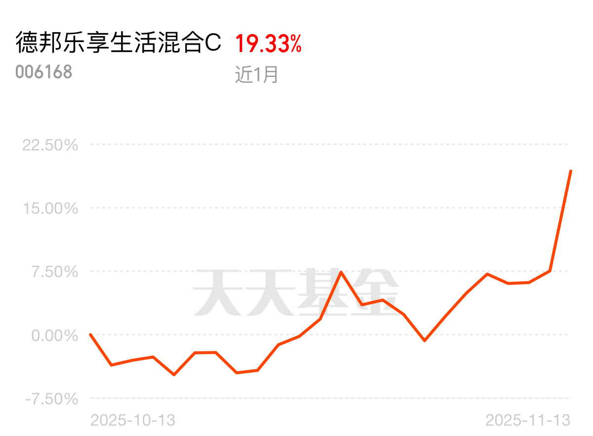 身边买基金的朋友都在推荐,说现在行情下这款基金很靠谱。德邦乐享生活混合C近1个月涨了19.33%,昨天大涨今天还能逆市涨,妥妥的放心之选,我可不想错过,赶紧上车!