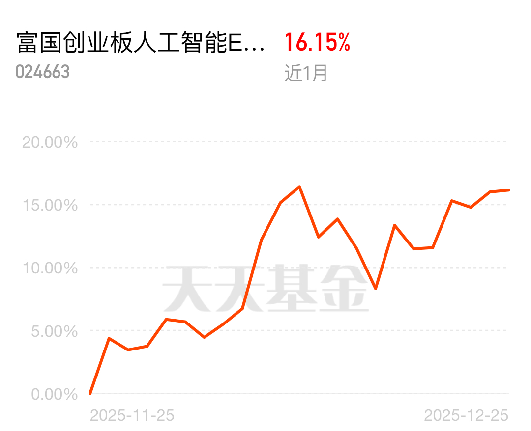 富国创业板人工智能ETF联接C近1个月涨了16%,近3个月也有8%收益,跑赢了绝
