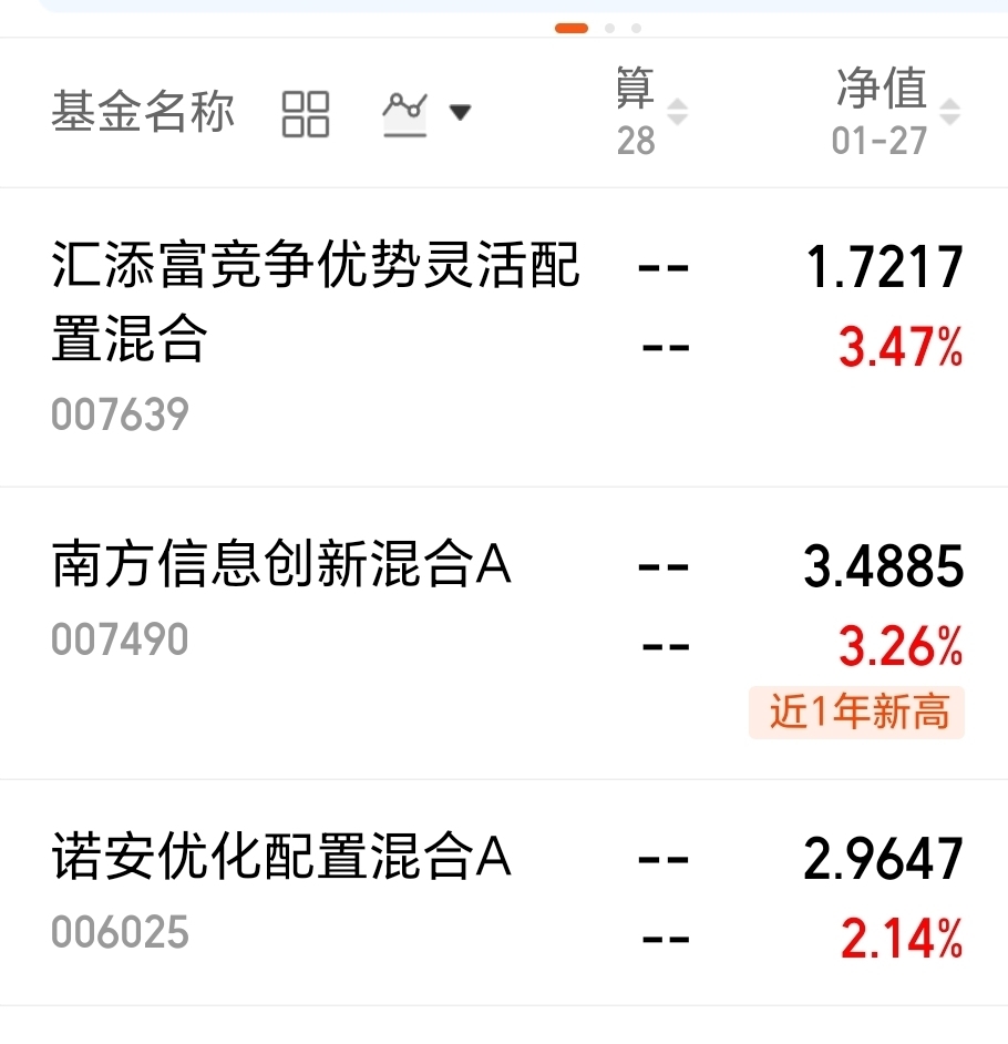 $汇添富竞争优势灵活配置混合$ 昨天上涨3.47%;