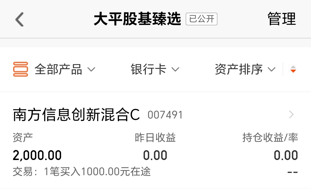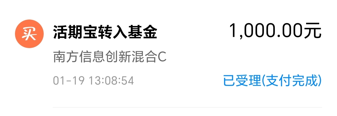 今天我买入$南方信息创新混合C(OTCFUND|007491)$1000块钱。