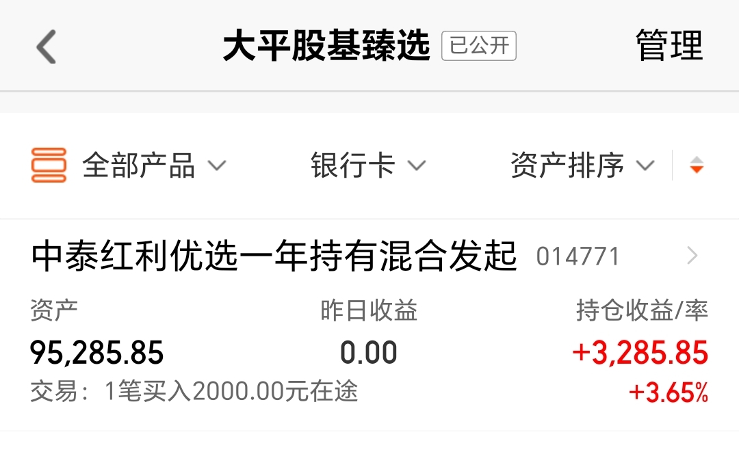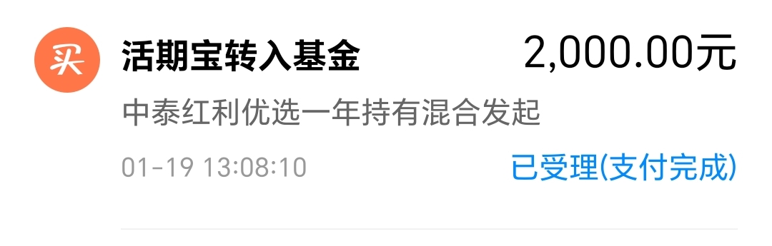 今天我买入$中泰红利优选一年持有混合发起(OTCFUND|014771)$2000块钱。