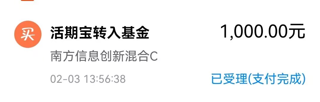 1、$南方信息创新混合C(OTCFUND|007491)$,买入1000元