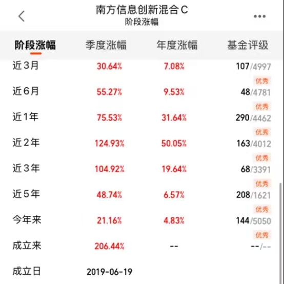 对于这种确定性强、但个股波动大的赛道,我现在的想法很简单:不纠结,搞配置。既然是行业红利期,打包一篮子核心龙头肯定比单吊一只稳妥。我自己一直在看南方信息创新混合C(007491)$南方信息创新混合C$ ,这只基金我关注很久了,它的持仓非常纯粹,几乎全是半导体设备、材料这些核心赛道的龙头,比如北方华创、中微公司这些大家耳熟能详的名字。我看了一下最新的数据,这基的业绩确实能打,近三个月涨了30.64%,近半年55.27%,近一年更是达到了75.53%,近两年翻了一倍多,成立以来的回报更是超过了200%。这种表现说明基金经理在“信息创新”这个细分领域的选股能力确实在线。对于不想费心研究个股,又想锁定这轮半导体设备材料行业红利的朋友来说,这算是一个比较省心的选择。