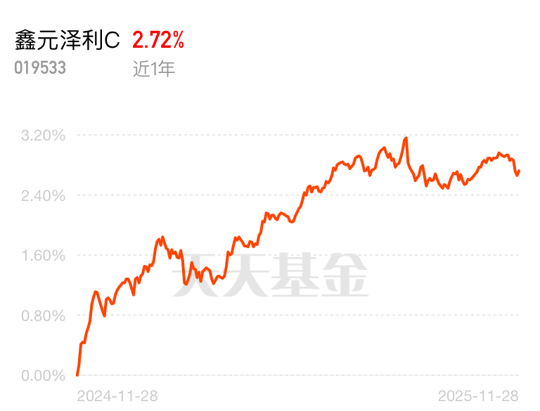 经济弱复苏背景下,稳健型资金扎堆低风险资产,纯债基金的防御属性超吃香。鑫元泽利债券 C 近 6年收益 2.72%,专注纯债投资不碰高波动资产,稳稳当当赚收益,适合求稳的投资者。$鑫元泽利C$
