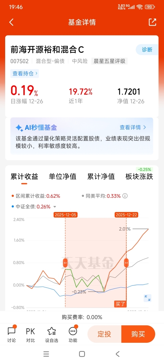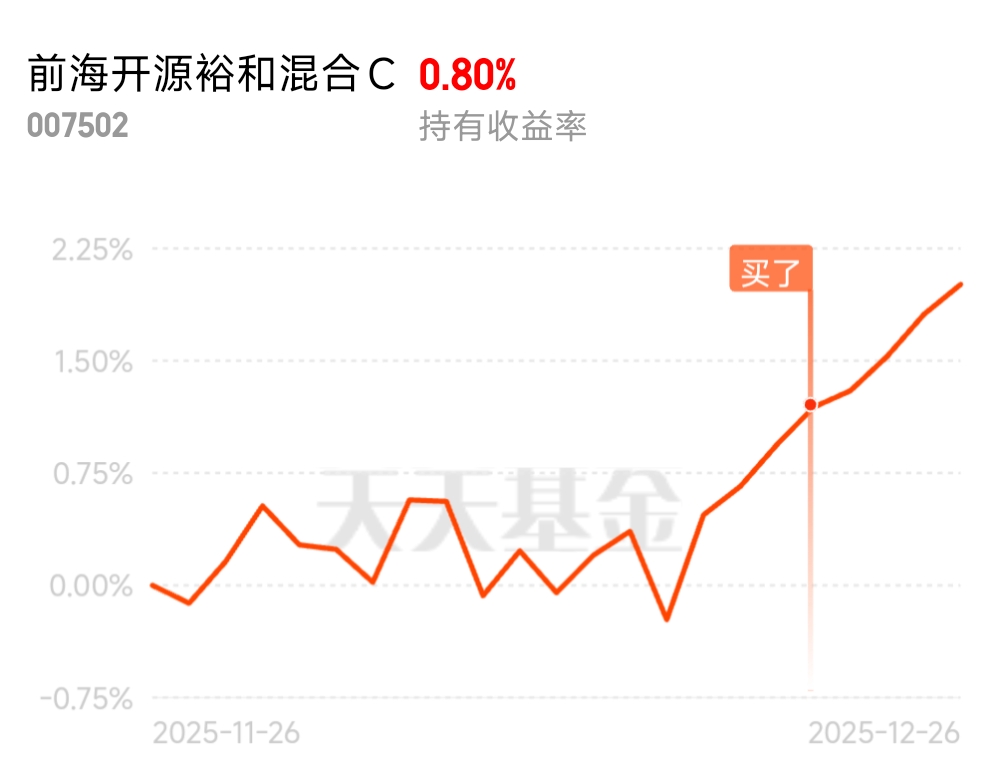 在底仓资产的大PK中,没有绝对的最优解,只有与个人投资目标最匹配的选择。$前海开源裕和混合C$ 以股债配比的灵活性、长期稳健的收益曲线、以及深入基本面与量化结合的管理哲学,为犹豫于黄金、红利与纯固收的投资者提供了另一种可能。或许,答案不在于追逐单一标的的极致特性,而在于拥抱平衡之道 。#晒收益# @前海开源基金