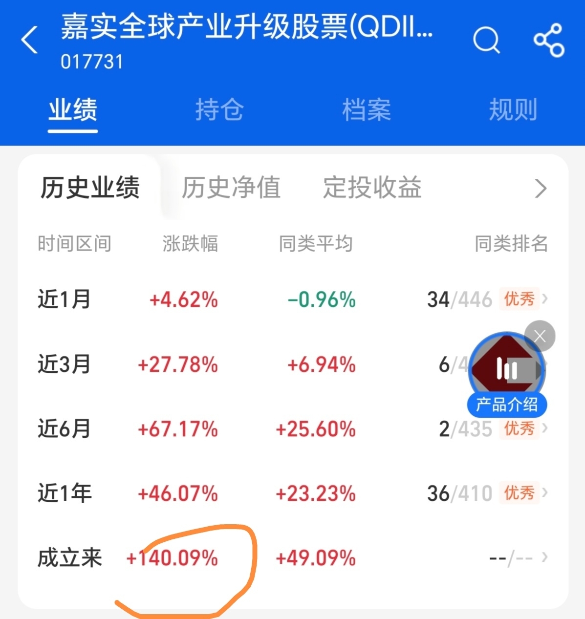太棒了,美股纳斯达克期货红了,科技连续涨,$嘉实全球产业升级股票(QDII)C$近期业绩表现还可以,近1个月涨了4.62%,近3个月涨了27.78%,近6个月涨了67.17%,近1 年涨了46.07%,业绩优秀,在同类基金里的排名也比较靠前。它主要投资的是科技相关领域,像半导体、Al这些方向。长期看好