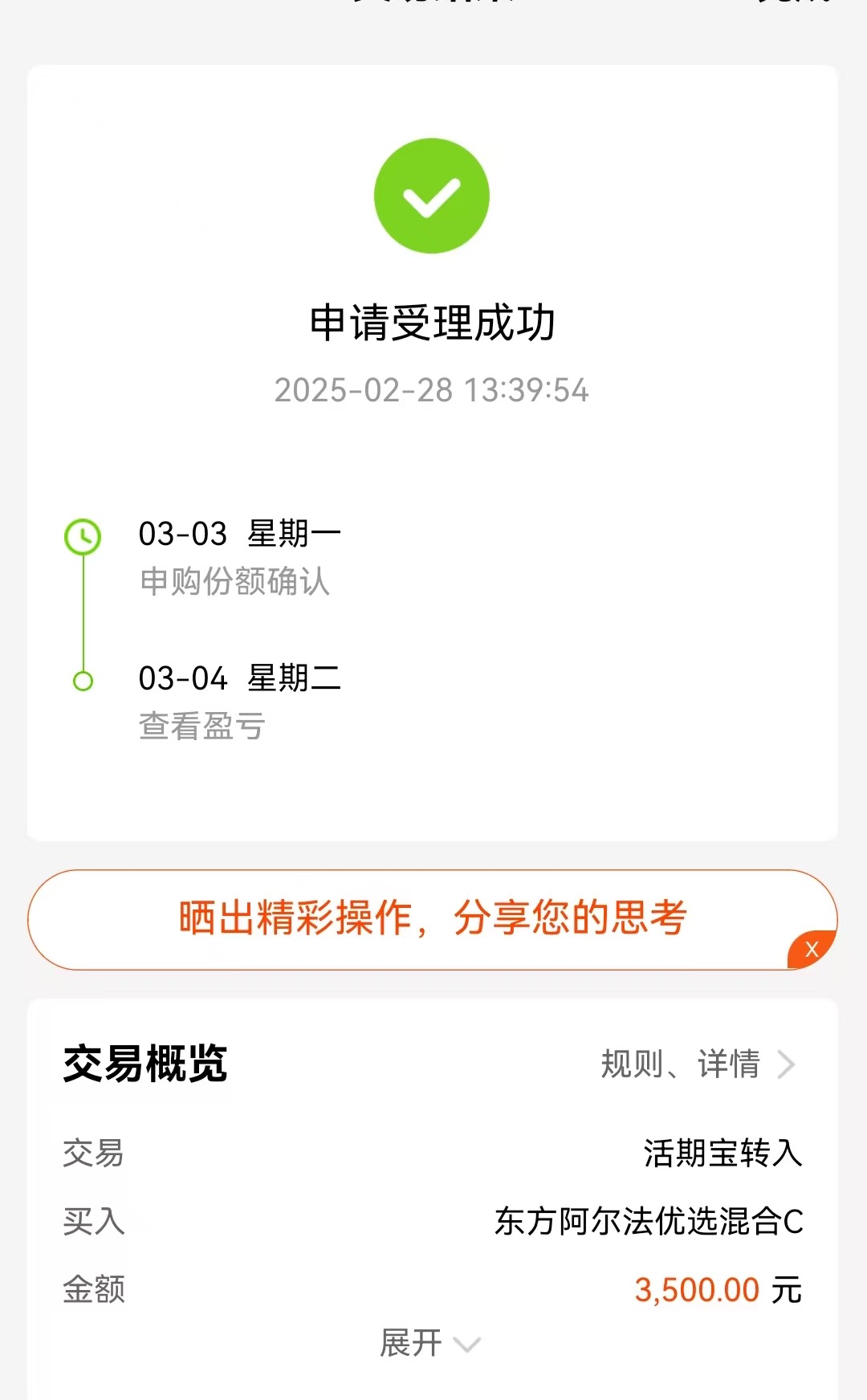 今天大盘震荡,我持有的$东方阿尔法优选混合C(OTCFUND|007519)$有所回调。与其他基金相比,它历史净值表现优异,我持仓收益率已有6.10%。今天趁着下跌继续加仓3500元,期待后期有个好收益。