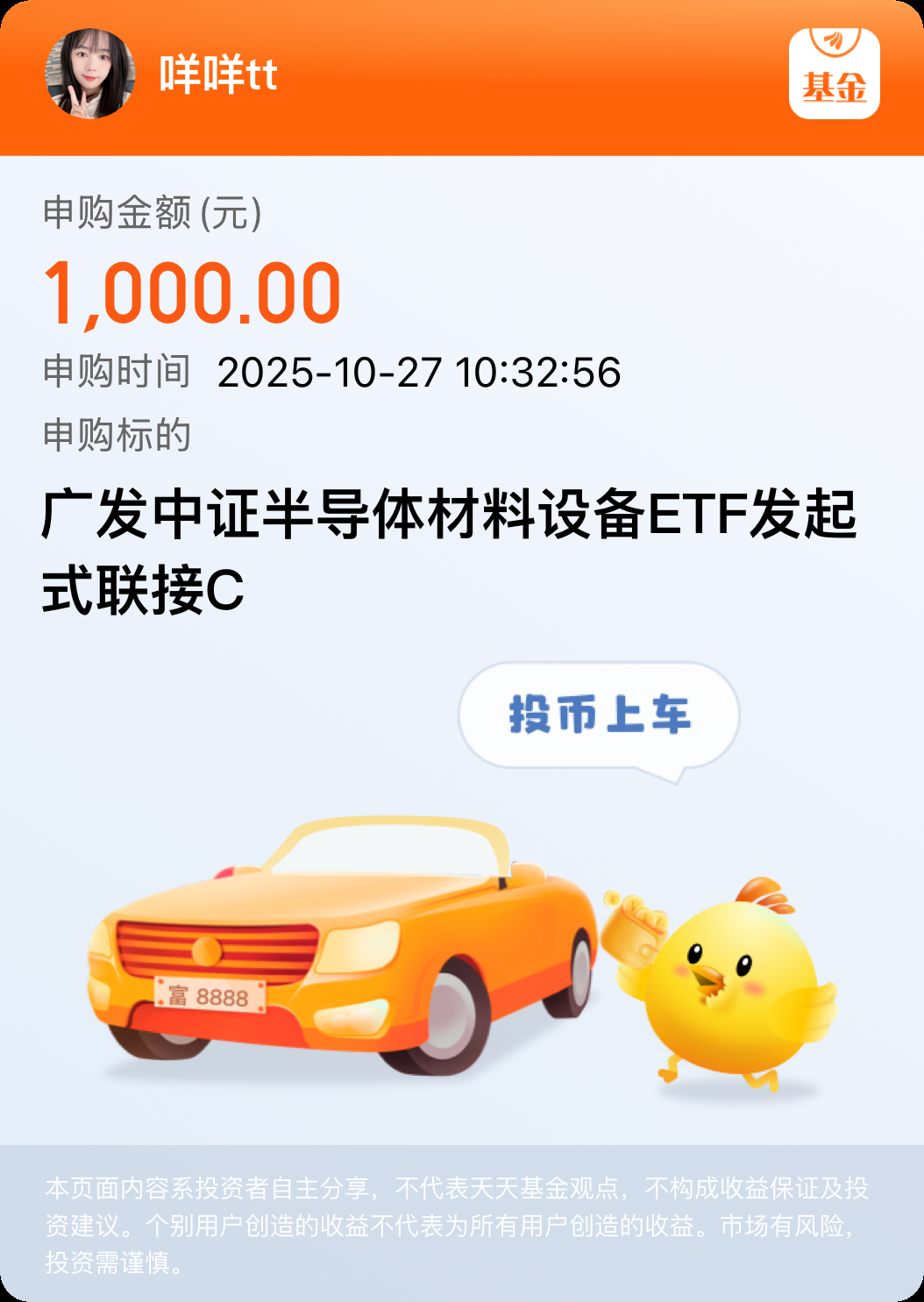我加1000元 $广发中证半导体材料设备ETF发起式联接C(OTCFUND|020640)$