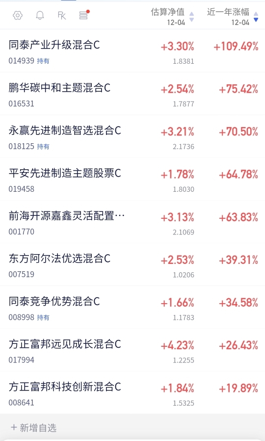 同泰产业升级混合C(014939) 涨 +3.35%