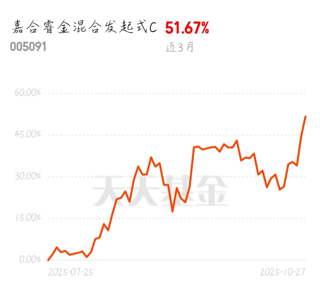 半导体板块涨得停不下来,CPO和存储芯片成了领涨主力,资金抢着进。嘉合睿金混合C紧跟风口,1周20个点,近3个月51.67%,收益很可观。