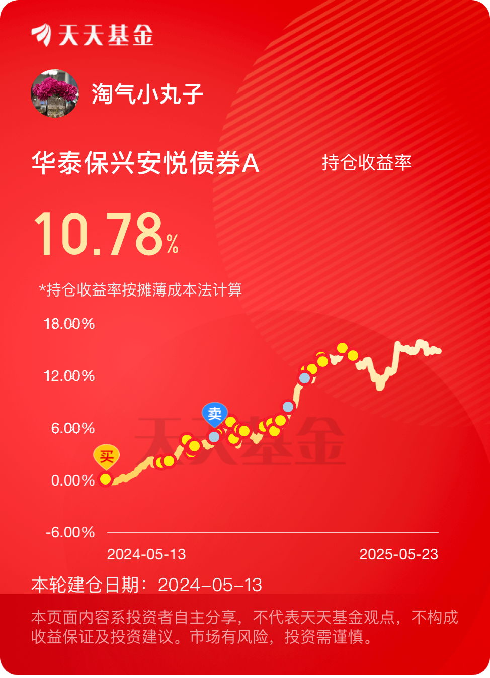 债基就是拿稳不能急。华子中长期业绩很不错,长期拿着慢慢积累还可以 $华泰保兴安悦债券A$ #晒收益#
