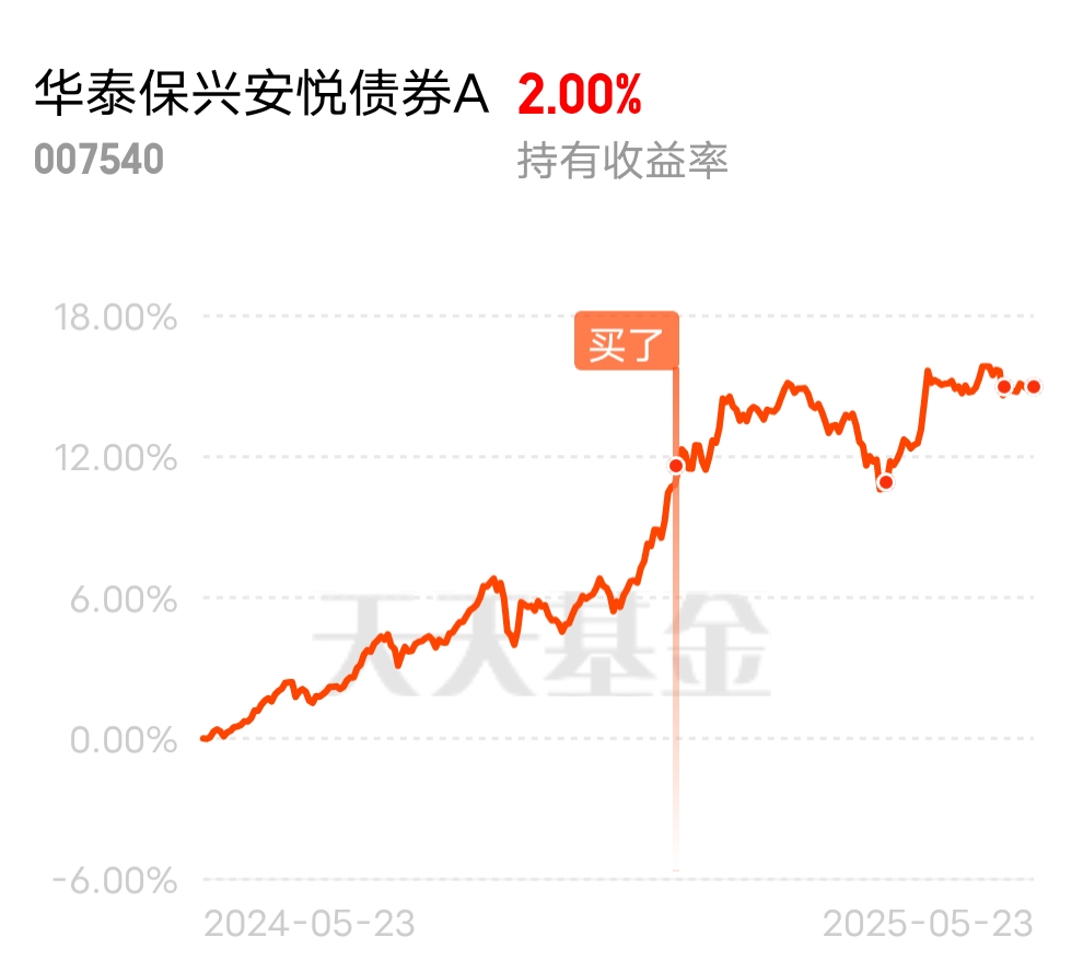 $华泰保兴安悦债券A$看来今天债券基金迎来上涨趋势,长期持有就不错。